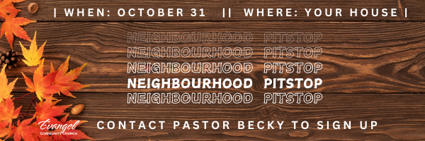 Neighbourhood Pit Stop is a night that we can reclaim and share the love and joy of Jesus with our community. It is an opportunity for us to go out into our community and say "Hey! We care!" Join us Oct 31st. Open your home and let's spread some light